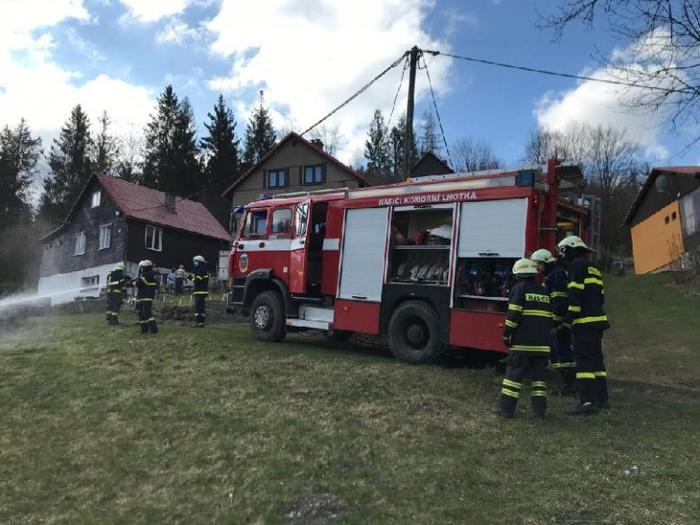 Jednotka SDH Komorní Lhotka vyjížděla k hlášenému požáru. Po příjezdu na místo zásahu byl požár majitelem již uhašen. Při průzkumu bylo zjištěno, že se v objekt v místě požárů nachází propanbutanová láhev, která byla jednotkou okamžitě vynesena na louku a začalo její ochlazování vysokotlakým proudem. Místnost byla odvětrána všemi otevřenými okny a proběhla kontrola požářiště, kde nebyla nalezena žádná další skrytá ohniska. Po příjezdu HZS z Nošovic byla chata přeměřena detektorem. Poté se jednotky vrátily zpět na své základny. Čas: 9:34 - 10:37 hod.. Zasahovali: Molin Tomáš, Lafek Jan, Majer Aleš, Sabela Andrzej, Santarius Jaroslav, Hampel Martin, Čolig Pavel, Kot Lukáš, Molin Jan
